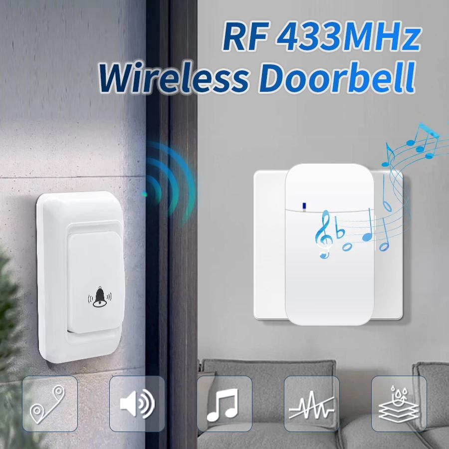 Sonnette sans fil RF 433MHz, carillon de maison étanche, t&e...