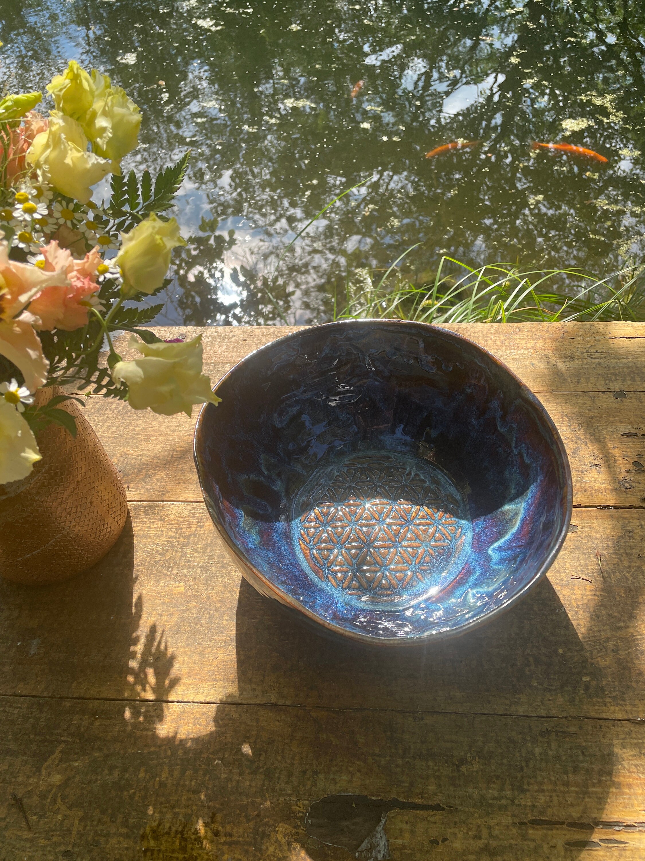 Coupe à fruits artisanale ornée de la Fleur de Vie - Dégradé de couleurs...