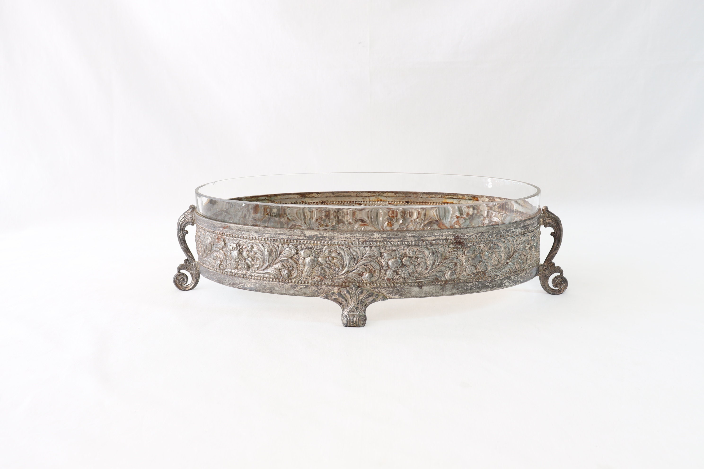 Un magnifique bol à fruits ou un plateau de service en métal argenté La corbeil...