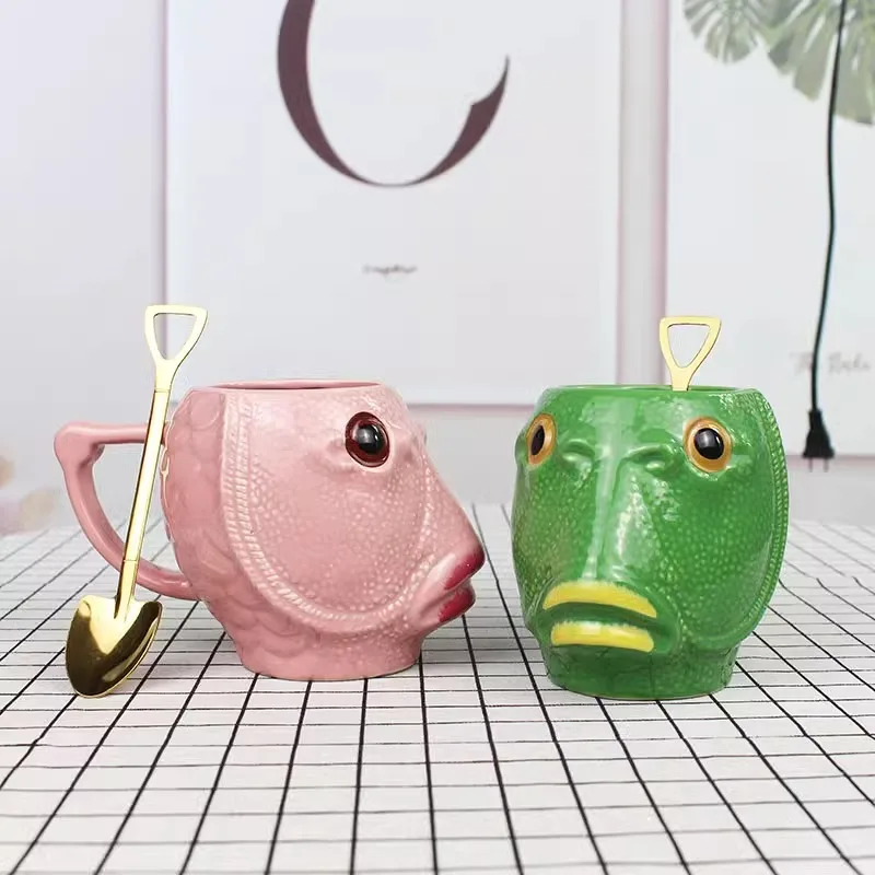 Tasse en céramique de poisson à tête verte, cadeau amusant et créatif pou...
