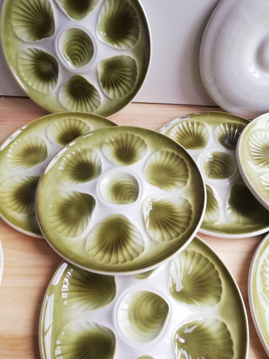 Vintage French ironstone oysters plate Moulin des loups x 6/ assiet...