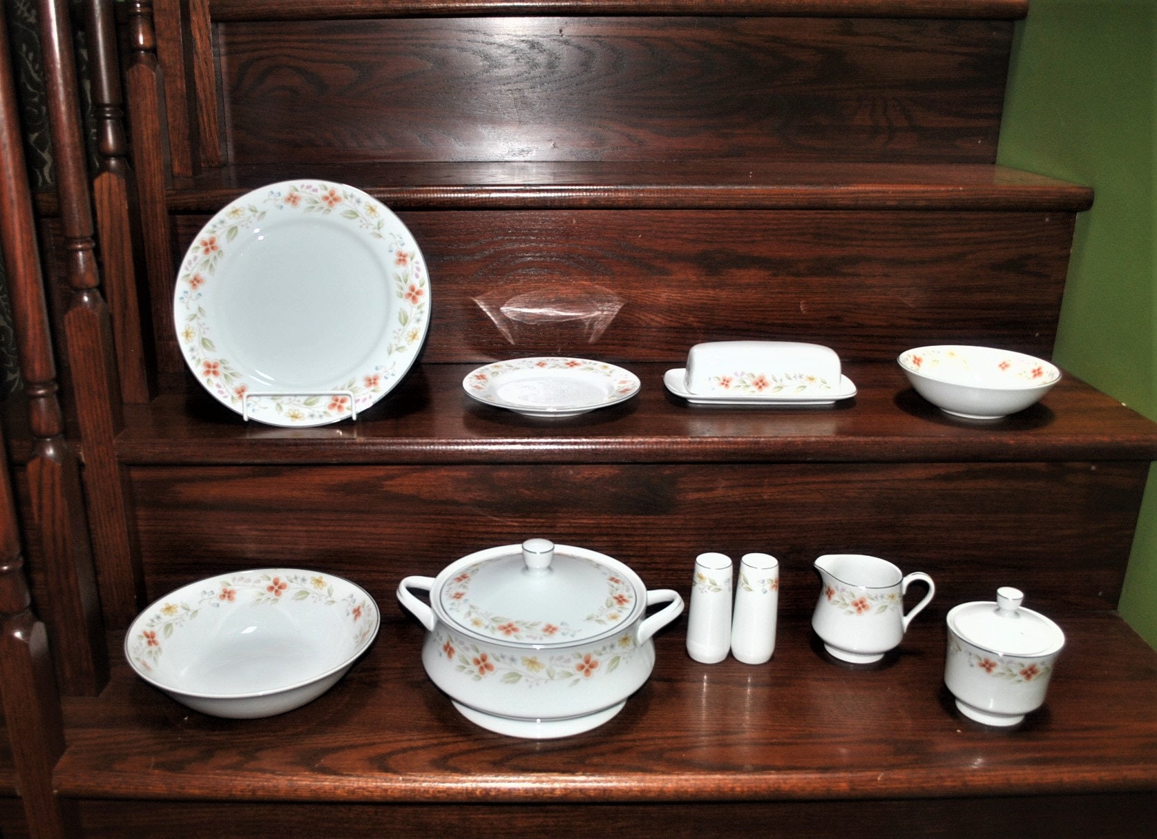Assiettes plates Petite Flowers by Fine China of Japan, couverts légumes, sel poivre, beurrie...