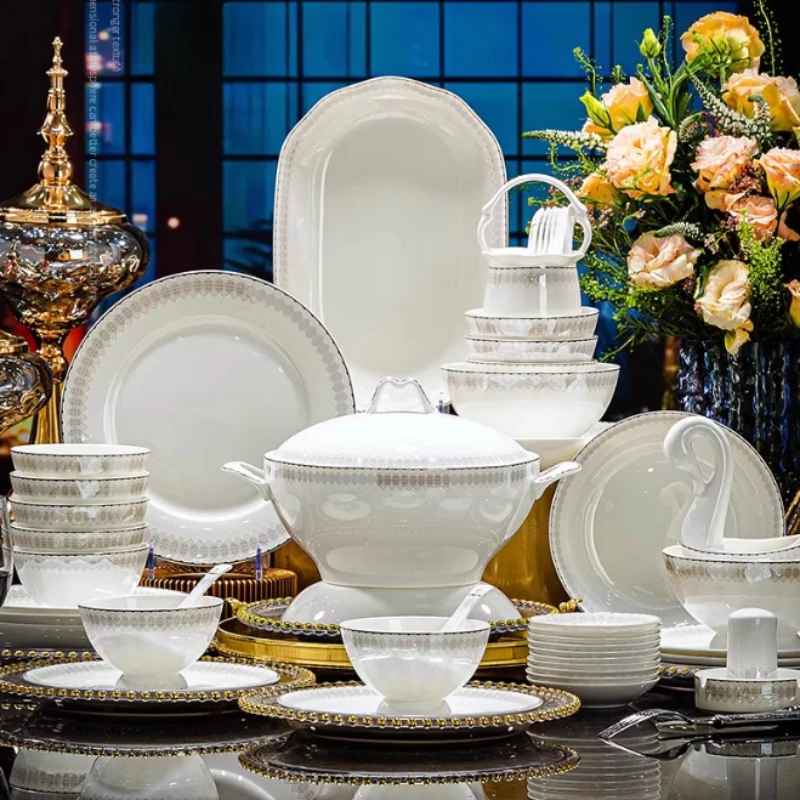 Ensembles De vaisselle De chine Fine, cuisine De maison, vaisselle De luxe De mariage, ensemble De v...