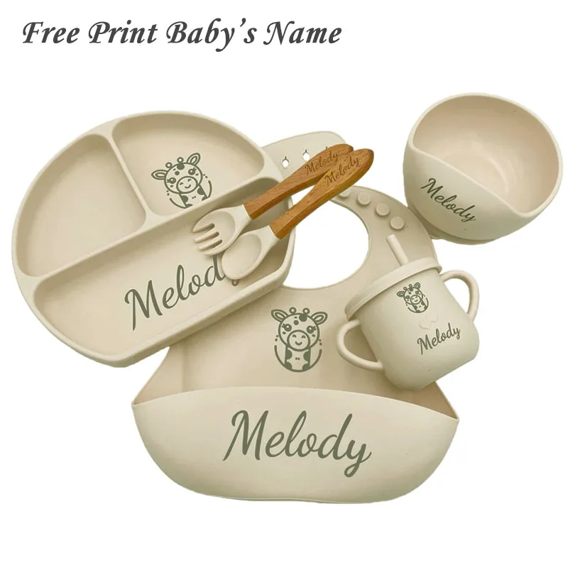 Ensemble d'alimentation en silicone personnalisé avec nom po...