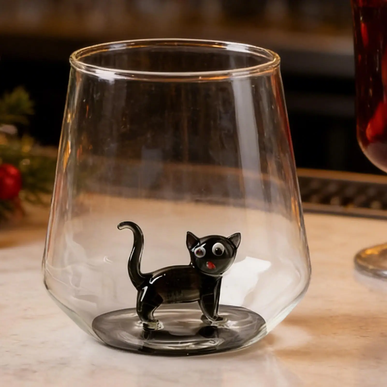 Adorable tasse à café en verre en forme de chat 3D, verre à vin sans poign&eacu...