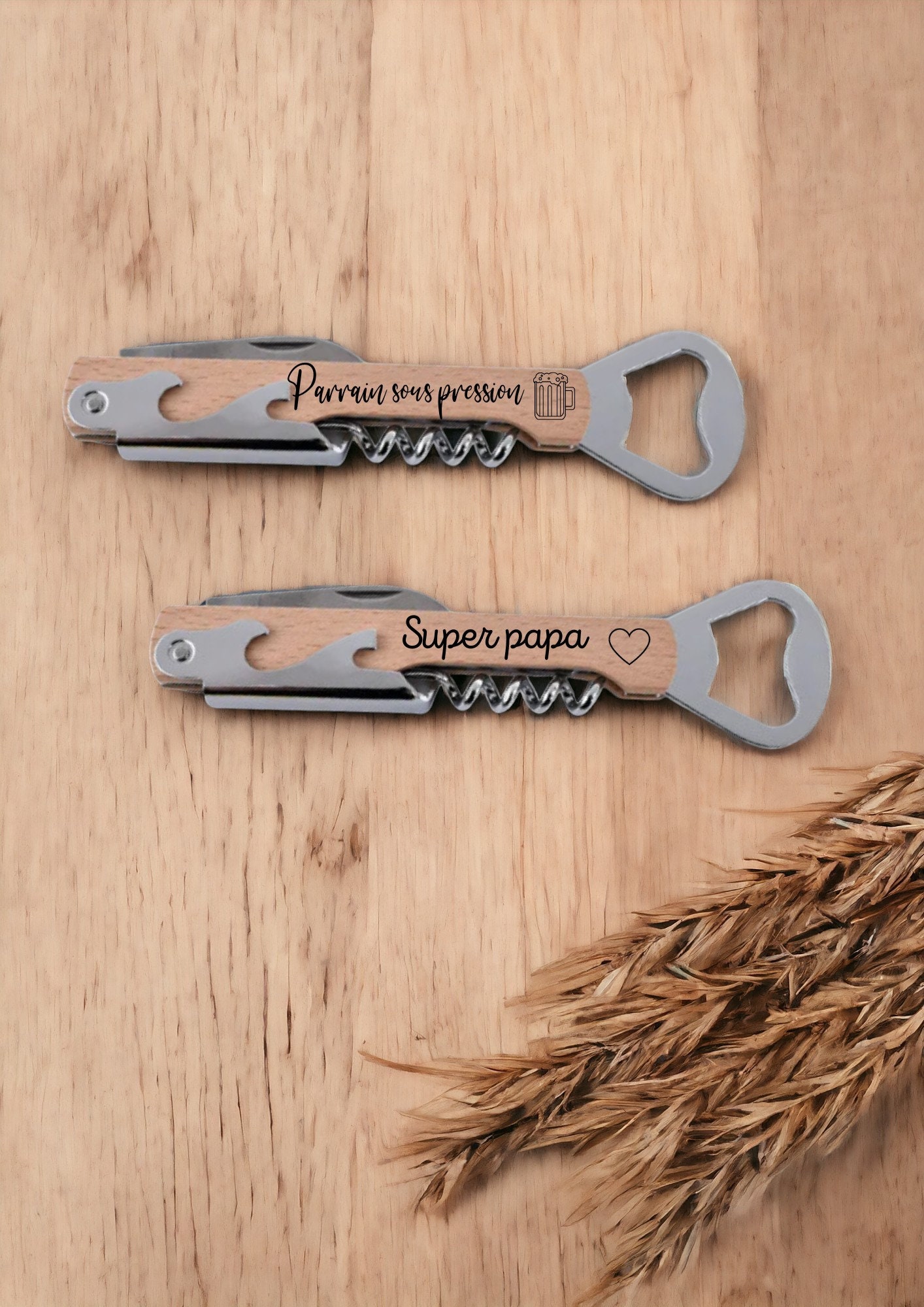 Tire bouchon en bois personnalisé - sommelier - cadeau uniqu...