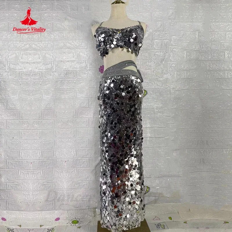 Costume de Performance de brevdu Ventre pour Femme, Haut de Soutien-Gorge AB Coal, Jupe Longue en Fi...