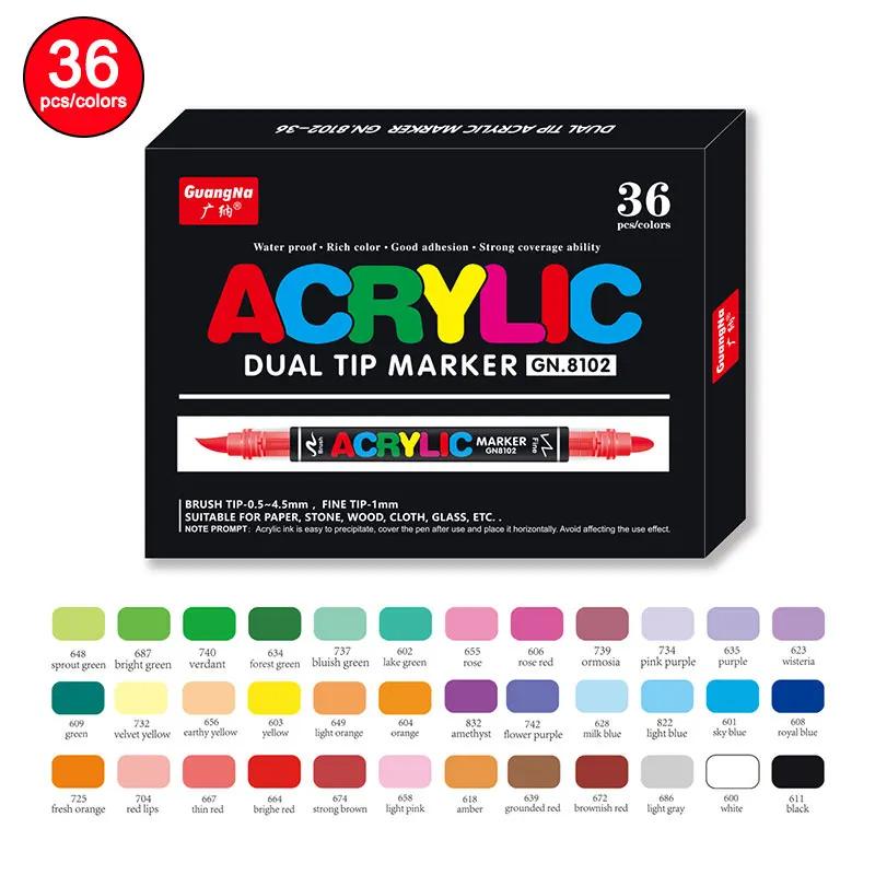 Marqueurs acryliques double pointe, pointe douce pinceau - 36/60/84...