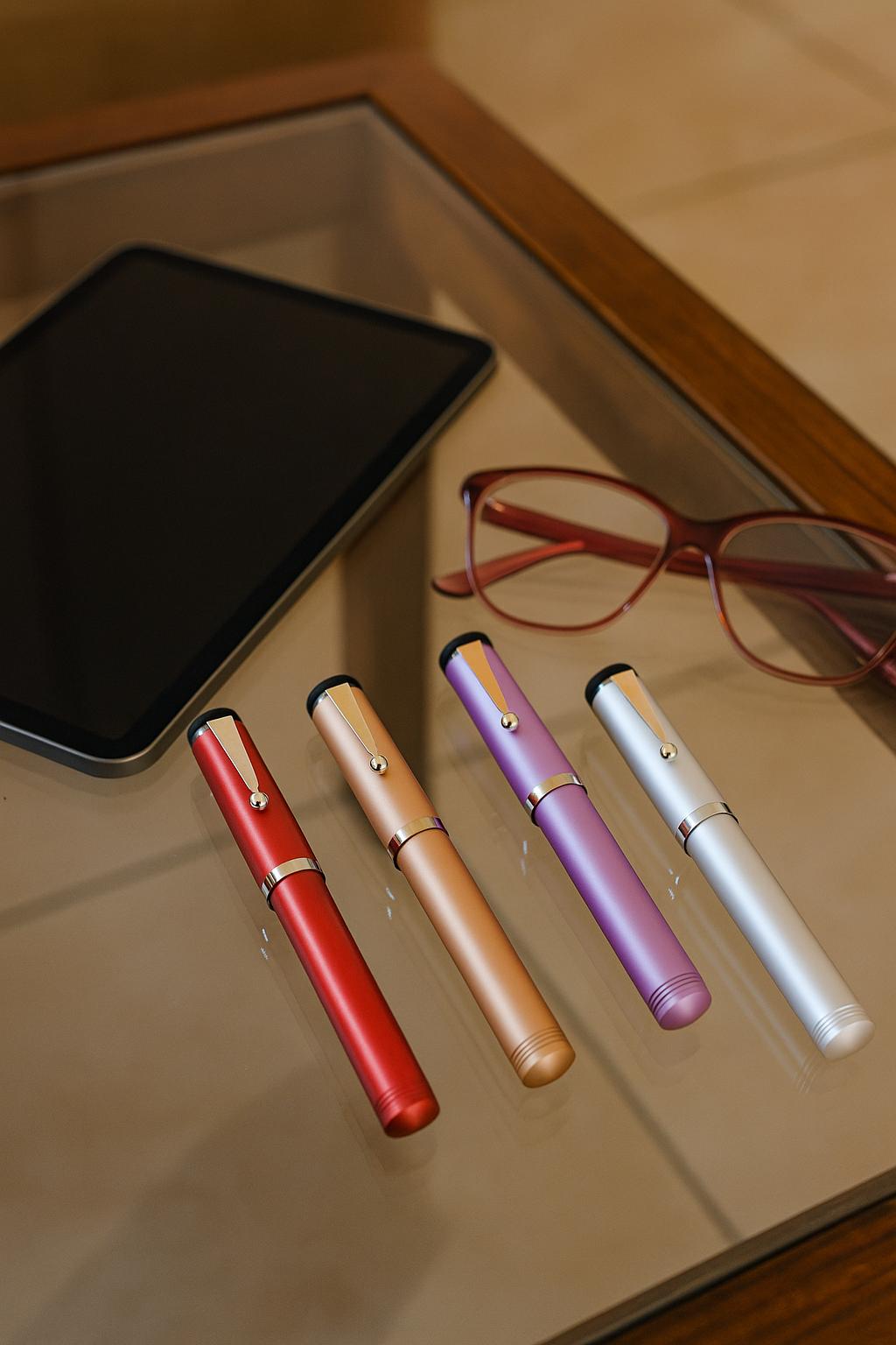 Le lot comprend 1 article par couleur : gris, rouge, violet, bronze. Plume en acier de qualité...