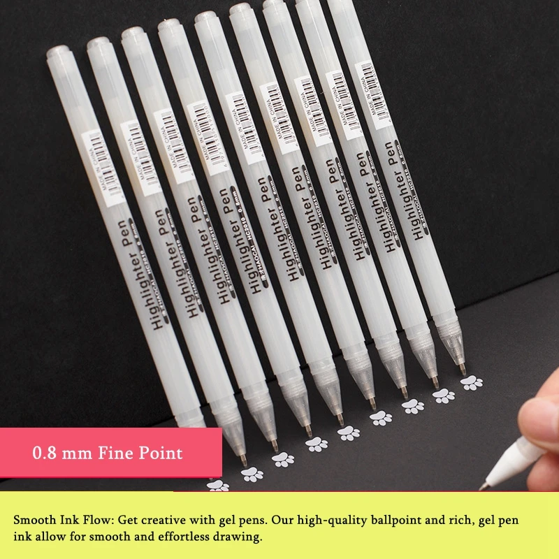 3/13Pc stylo Gel blanc 0.8mm pointe Fine stylo blanc tige de recharge pour artistes Art dessin croqu...