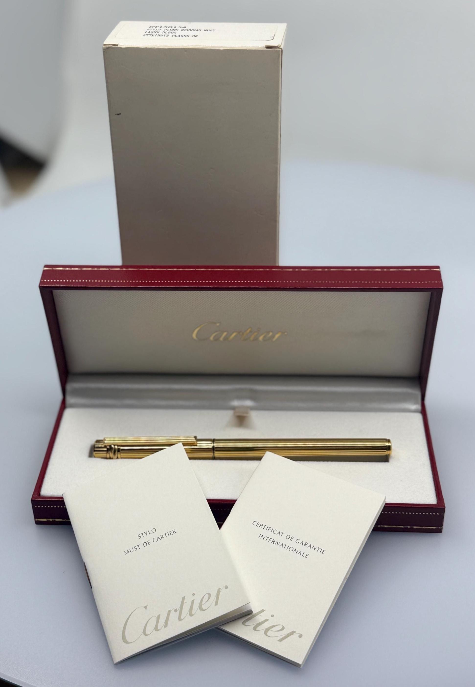 Stylo plume Cartier Must de Cartier - Neuf, plaqué or, avec boîte et étui d'orig...