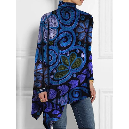 T-shirt femme mode floral imprimé ourlet asymétrique ...