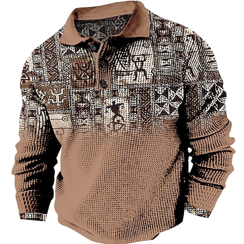 Homme Tribal Chemises Polo Gaufre Chemise de golf manche longue Pol...