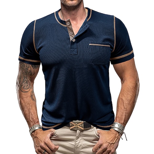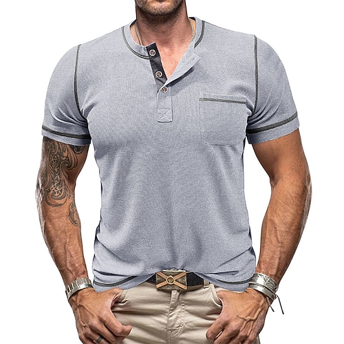 Homme T-shirt gaufré T-shirt à boutons T-shirt T-shir...