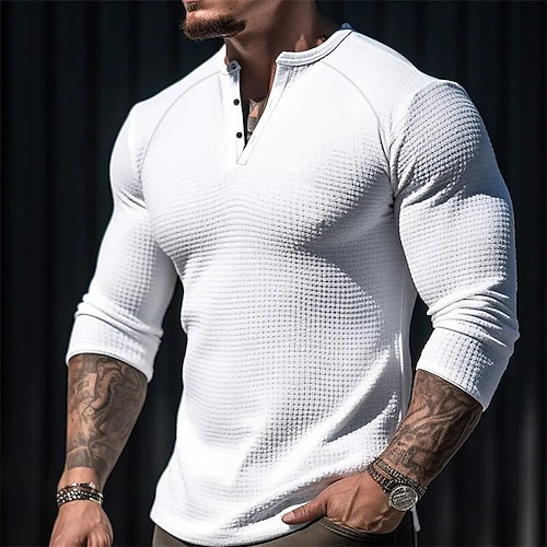 Homme T shirt Tee Chemise Henley gaufrée Chemise Henley Shir...