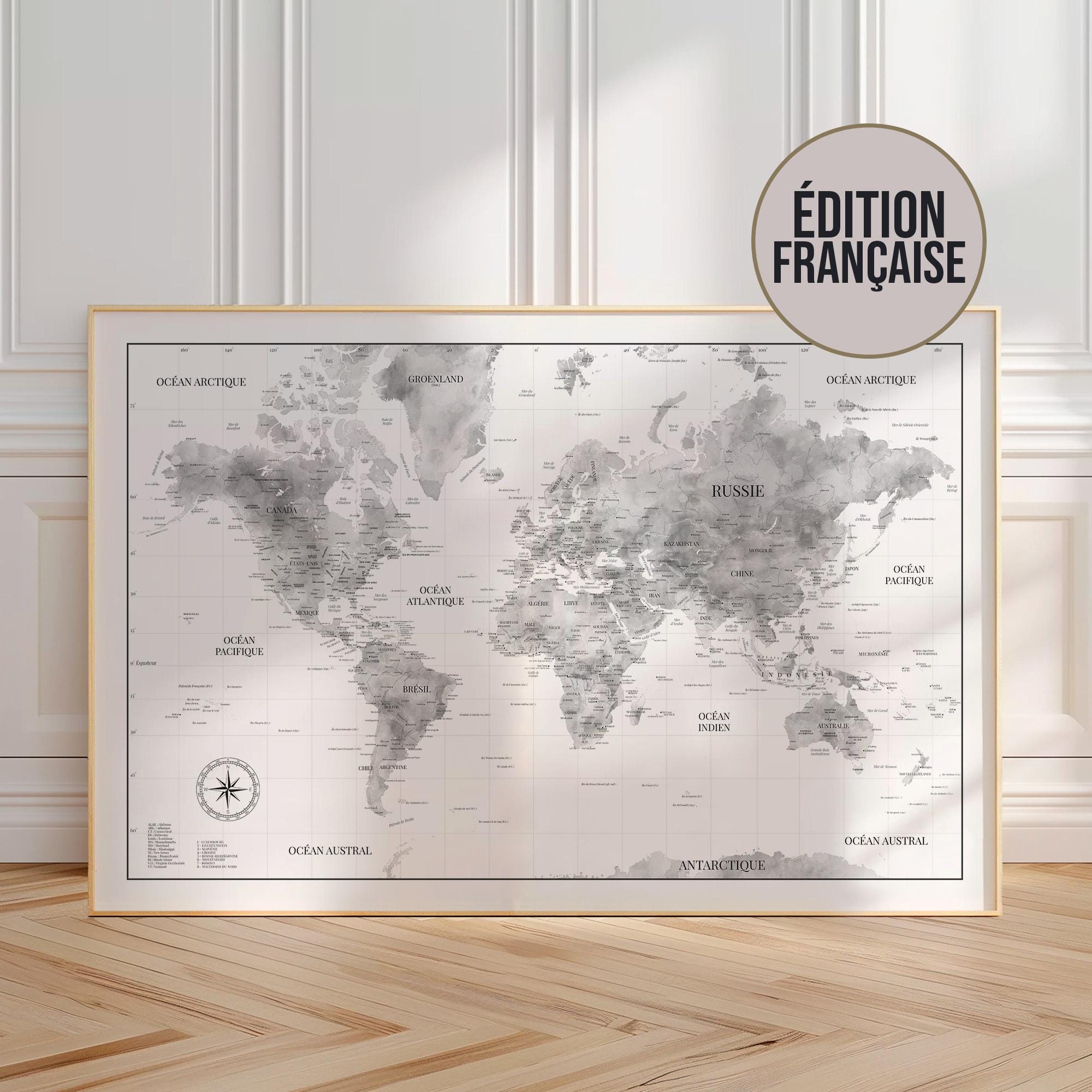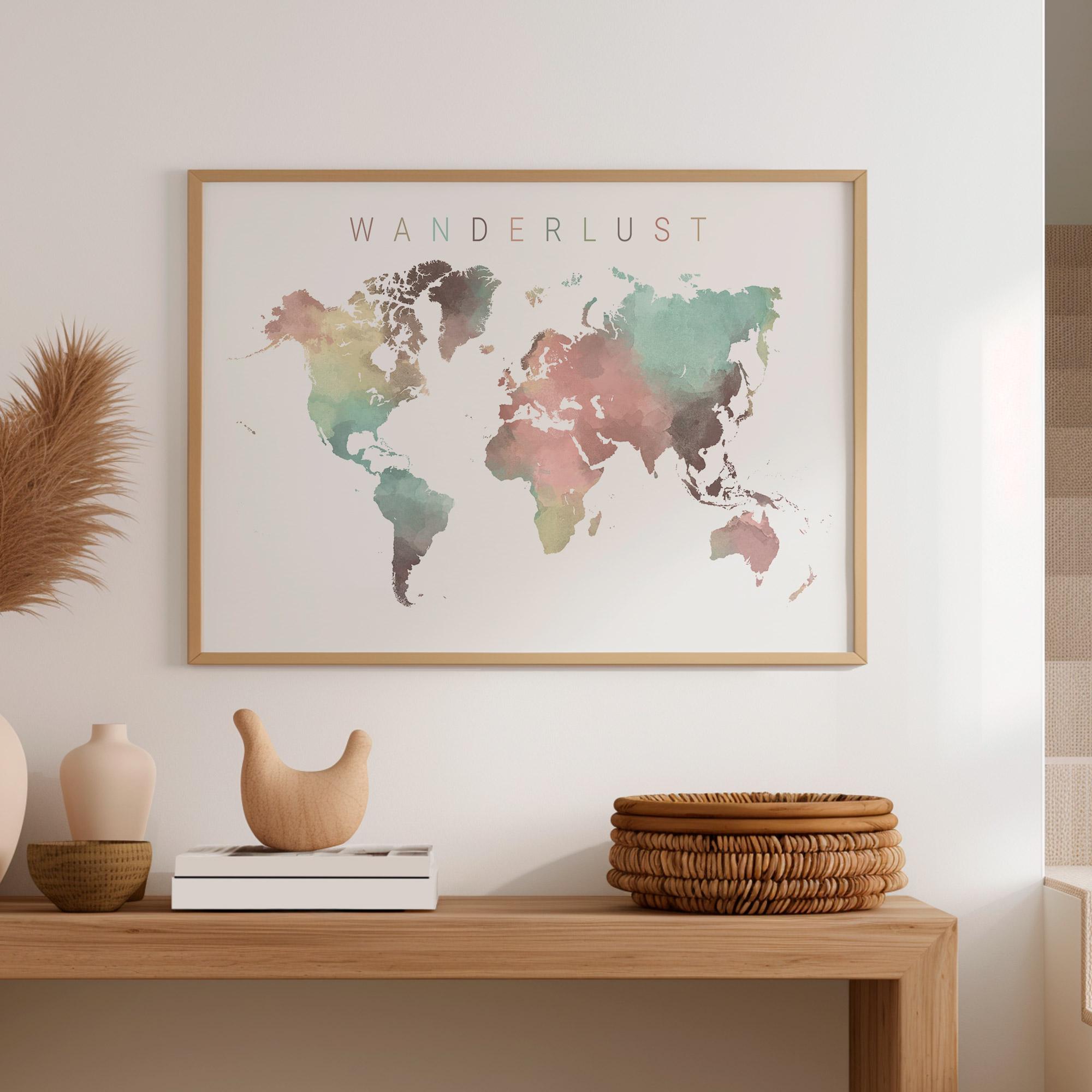 Carte du monde encadrée, impression d'art mural, carte nauti...
