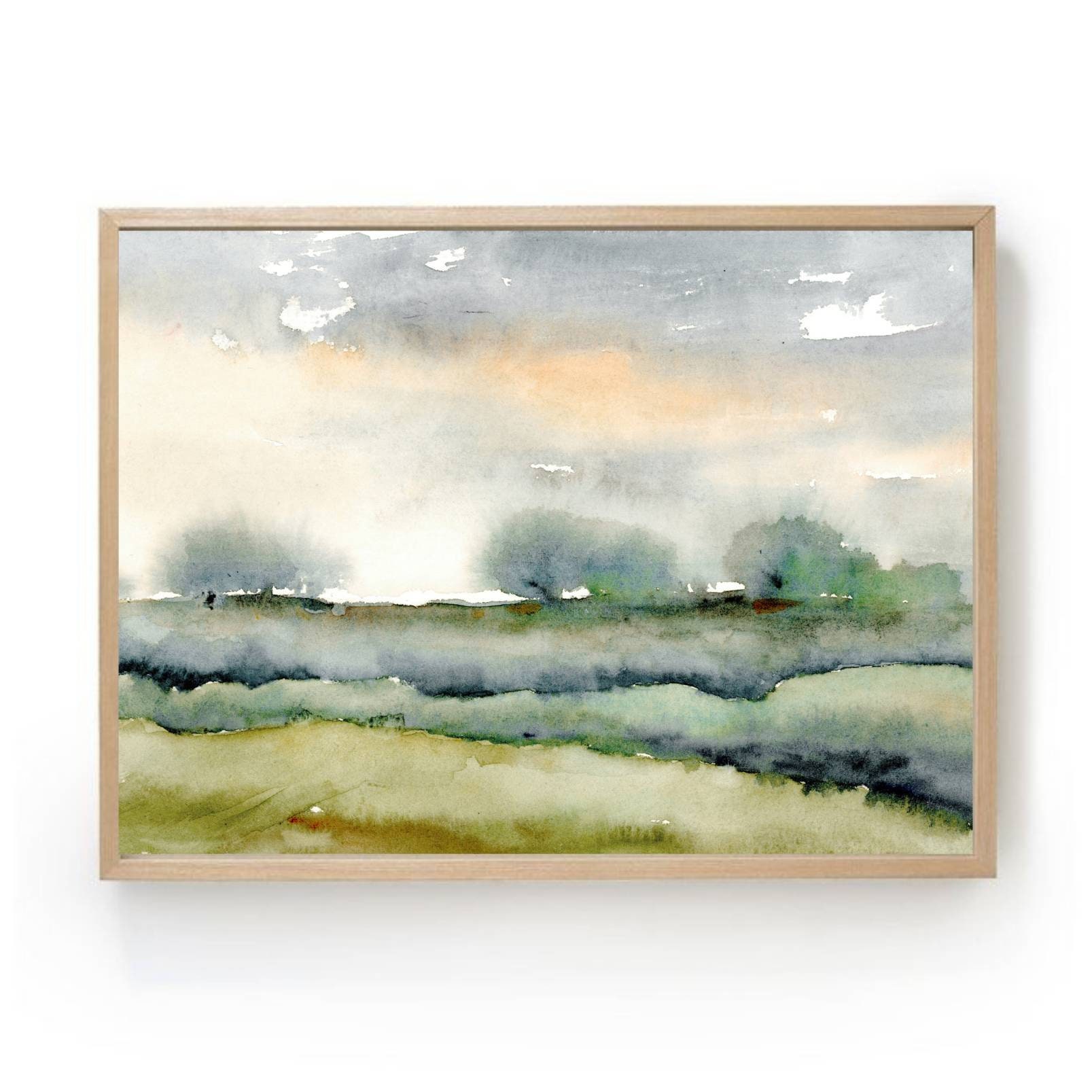 Aquarelle paysage art abstrait impression nature vert bleu beige pe...