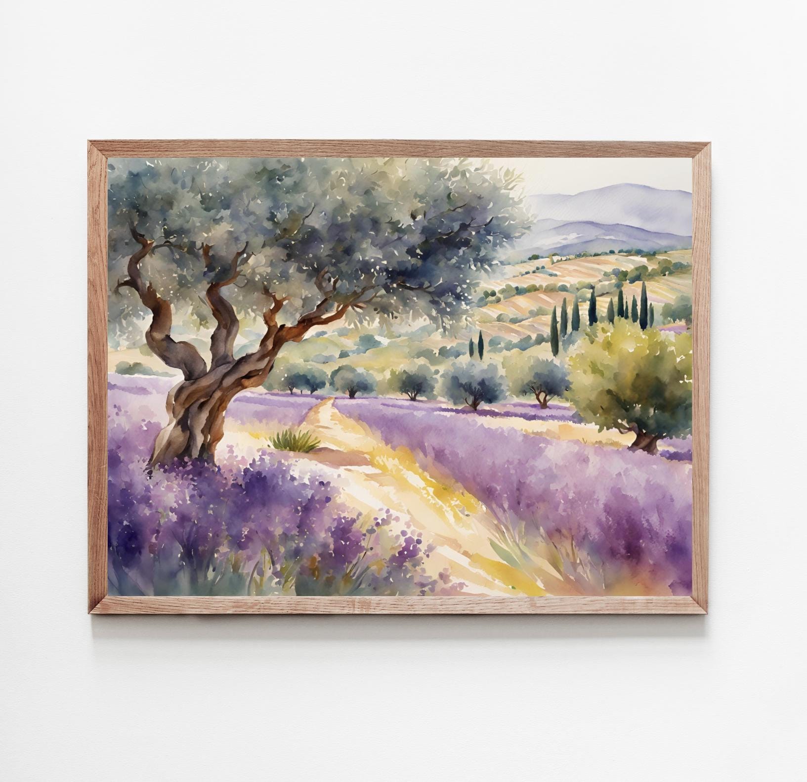 Tableau de champ de lavande d'olivier, images de paysage d'Italie, impression d'art aquarelle, affic...