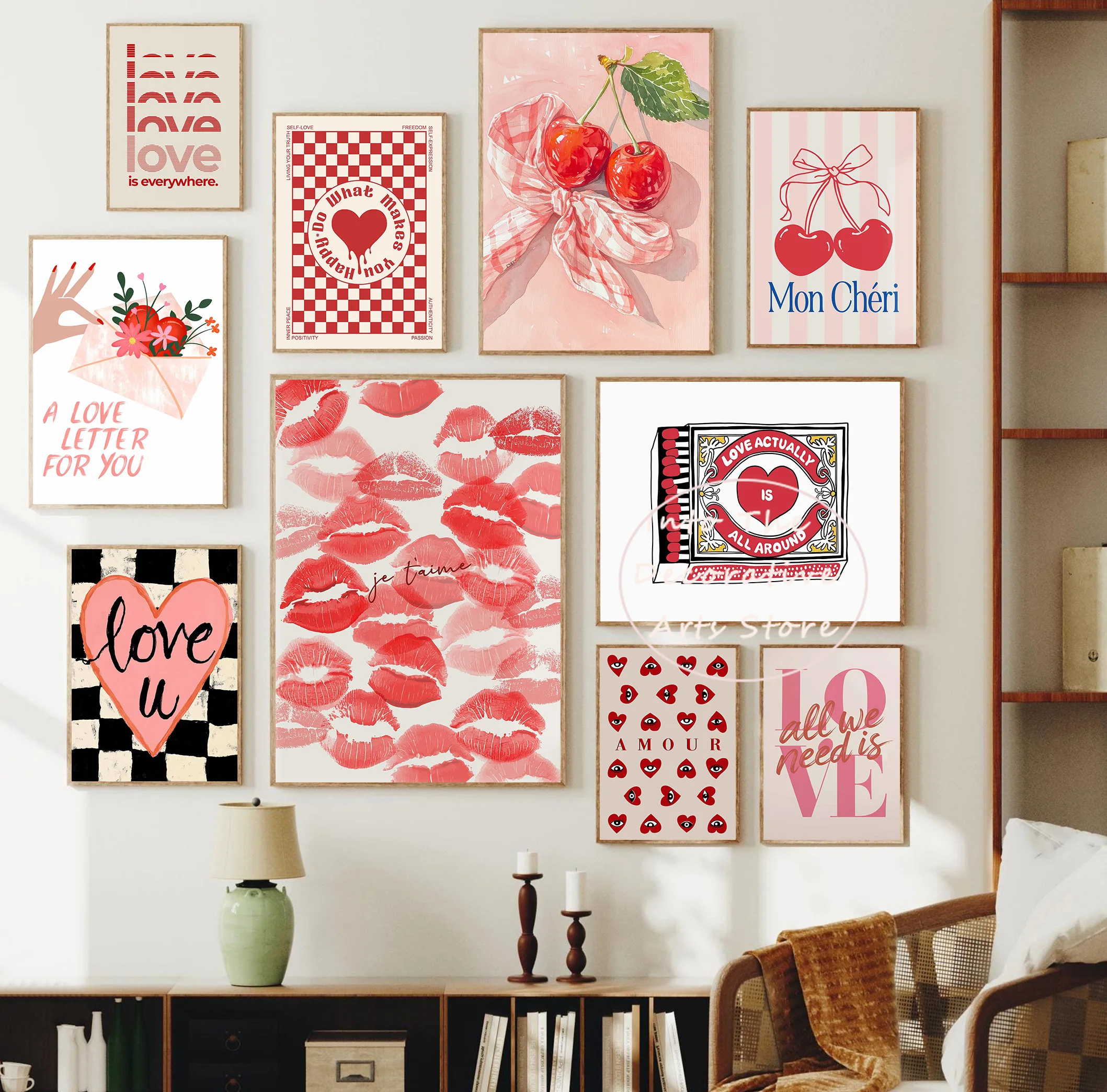 Affiche d'art sur toile tendance avec un nœud rose, une galer...