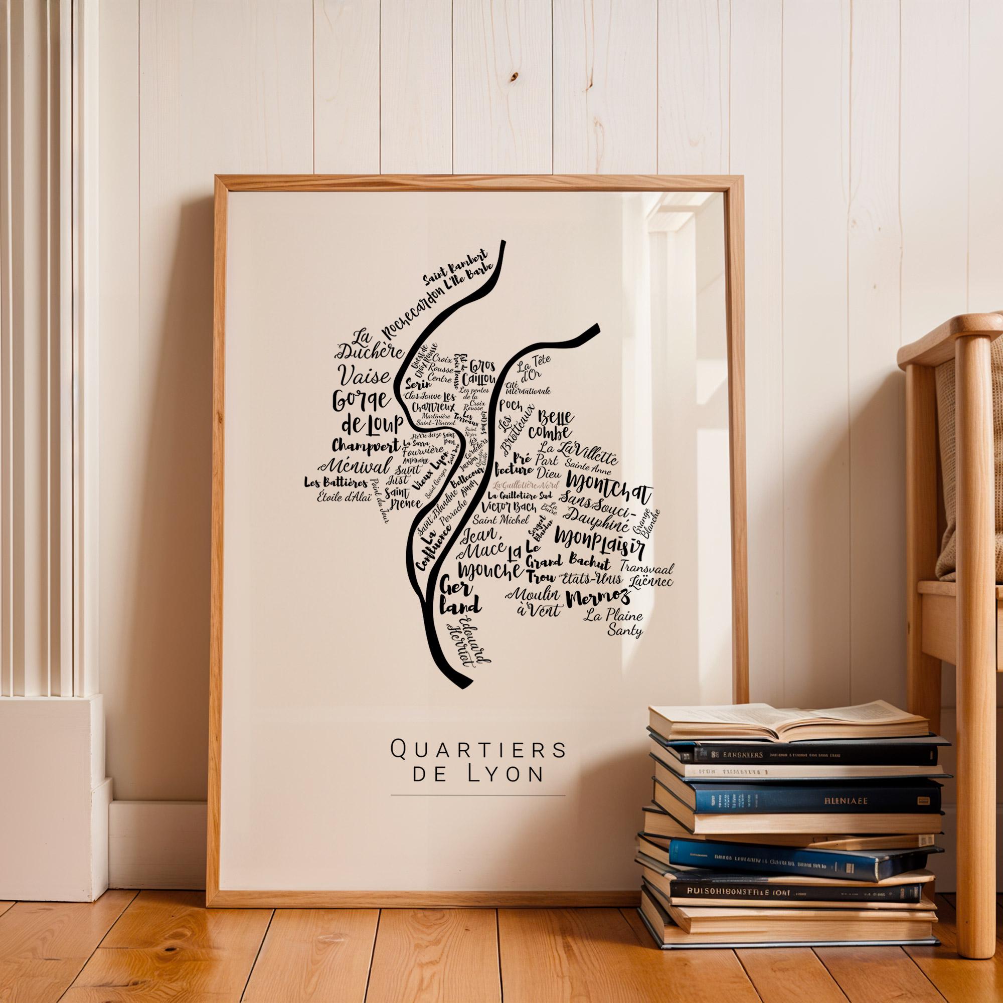 Affiche de Lyon, Carte des quartiers de Lyon personnalisable, Cadea...