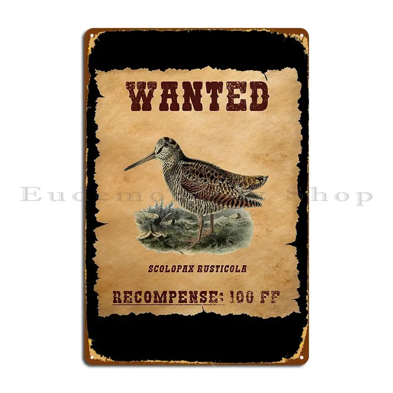 Affiche Wanted Papier Becasse Plaque métallique affiche cinéma personnaliser Pub salon...