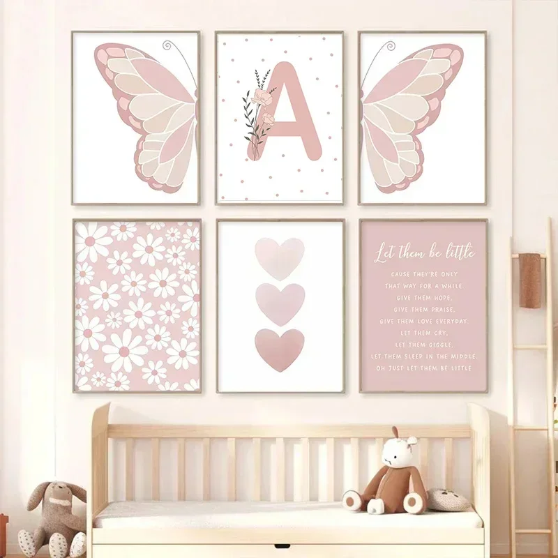 Tableau mural papillon rose, impressions sur toile pour chambre d'enfant, affiches soleil, arc-en-ci...