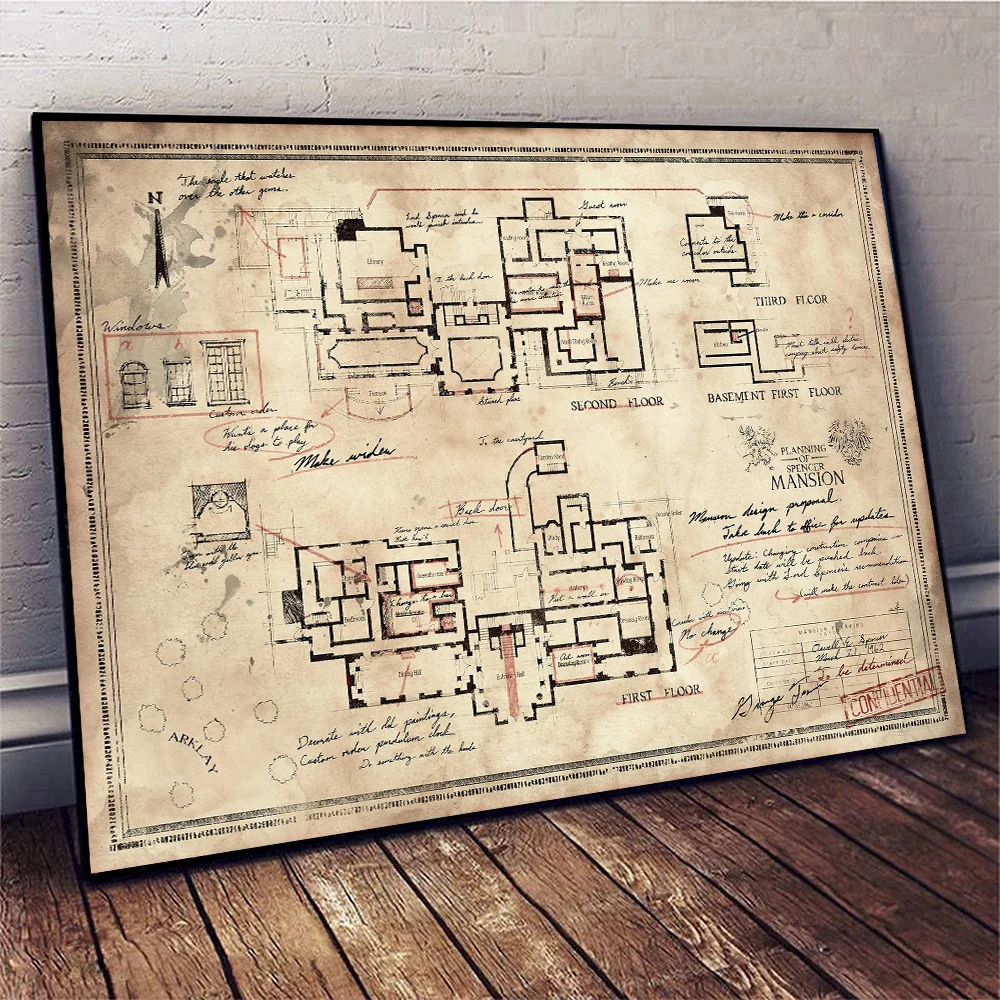 Affiches classiques R-Resident Map Evil, plan de la maison Spencer, impressions sur toile, peinture ...