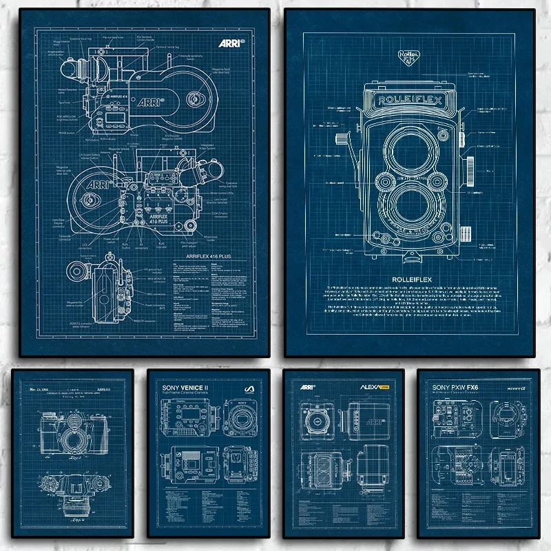 Affiche de plan d'appareil photo Leica Vintage, peinture sur toile d'appareil photo classique, Art m...
