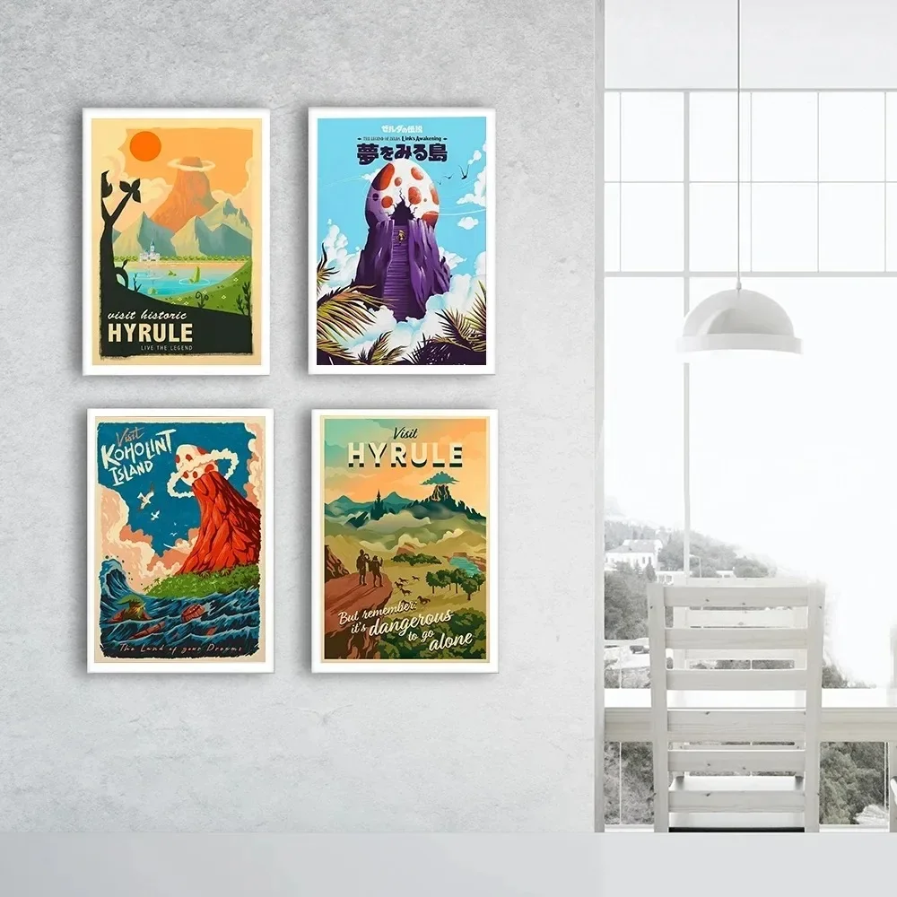 Zelda voyage Anime paysage affiche Village toile peinture impressio...