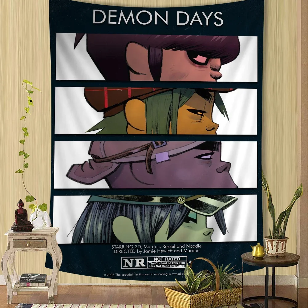 Gorillaz Anime Tapestry, Retro Music, Confrontarot, Hiphelicopter Wall Rugs, Dortoir
