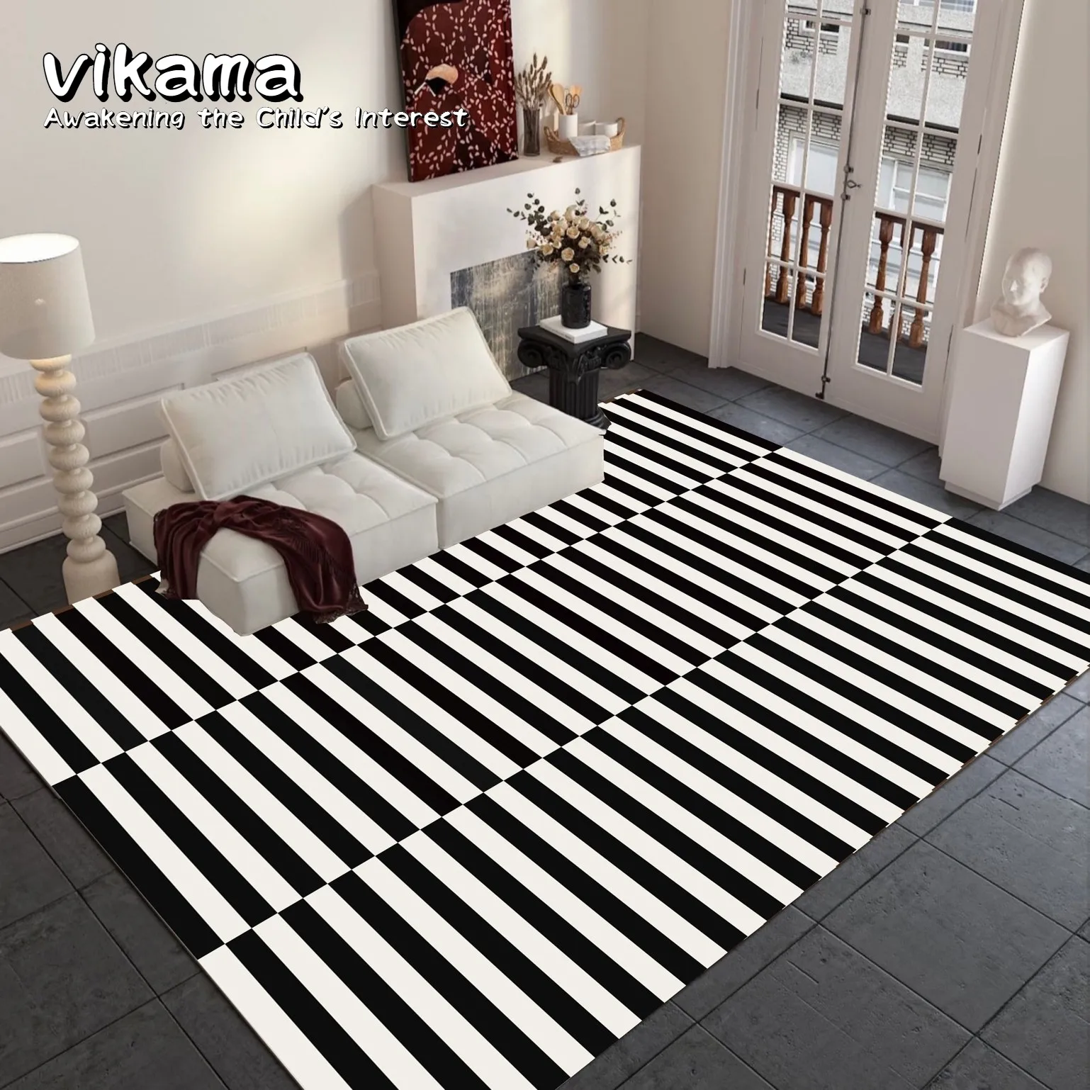VIKAMA Tapis rayé noir et blanc en fil super fin imitation c...