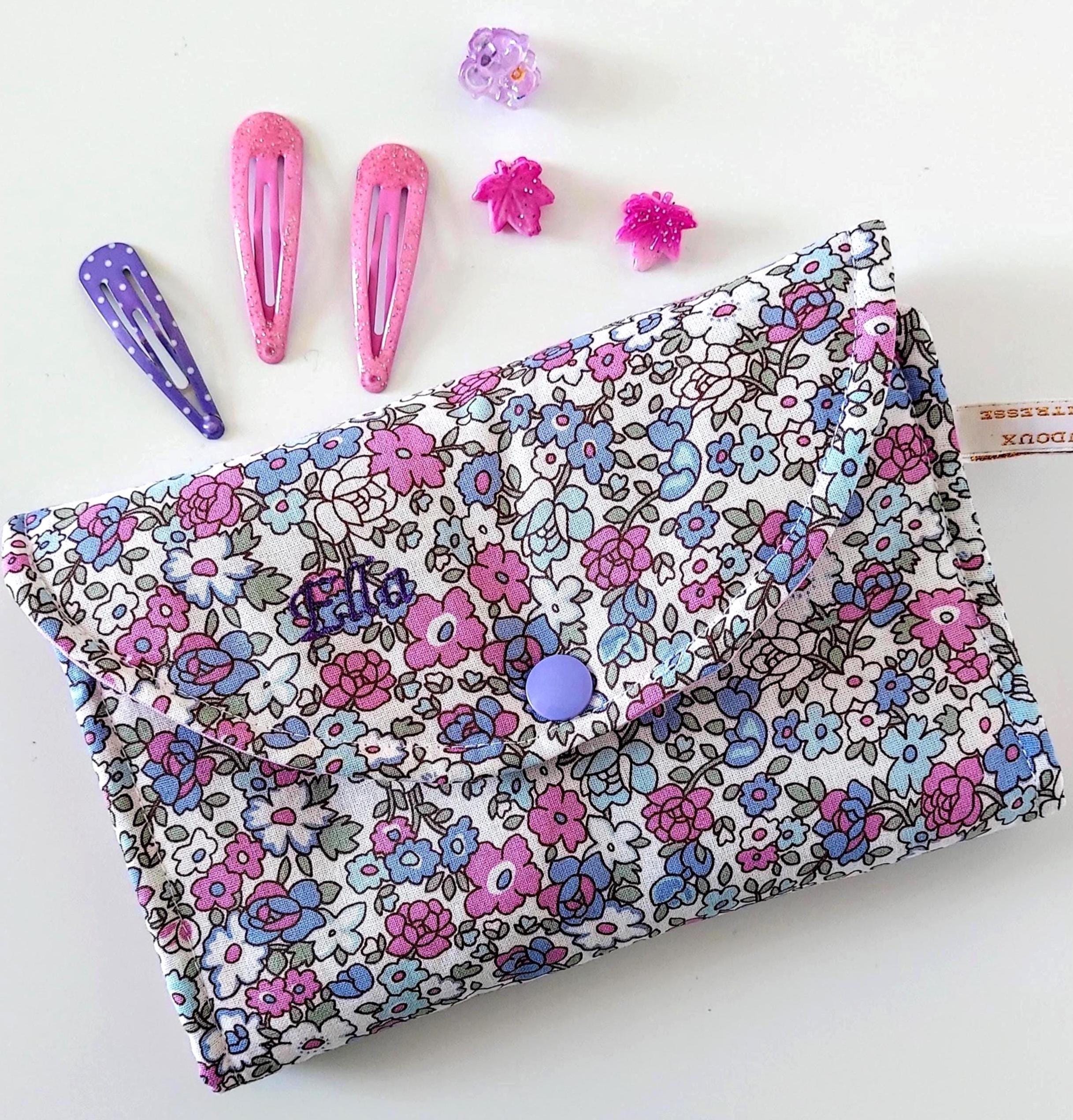 Pochette porte barrettes enfant personnalisable Tissu fleuri liberty oeko-tex rose et lilas Votre pe...