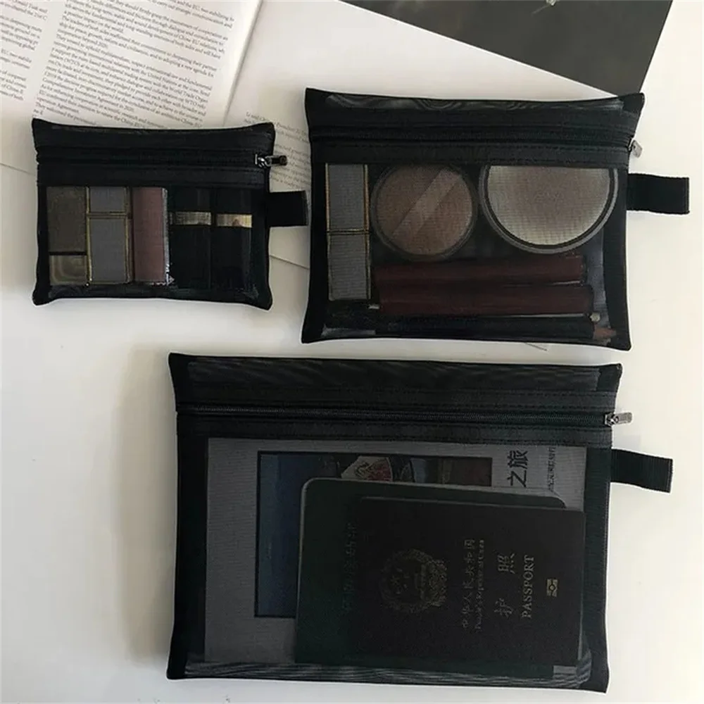 Sac à cosmétiques en maille pour femme, trousse de rangement de voyage, trousse de maq...