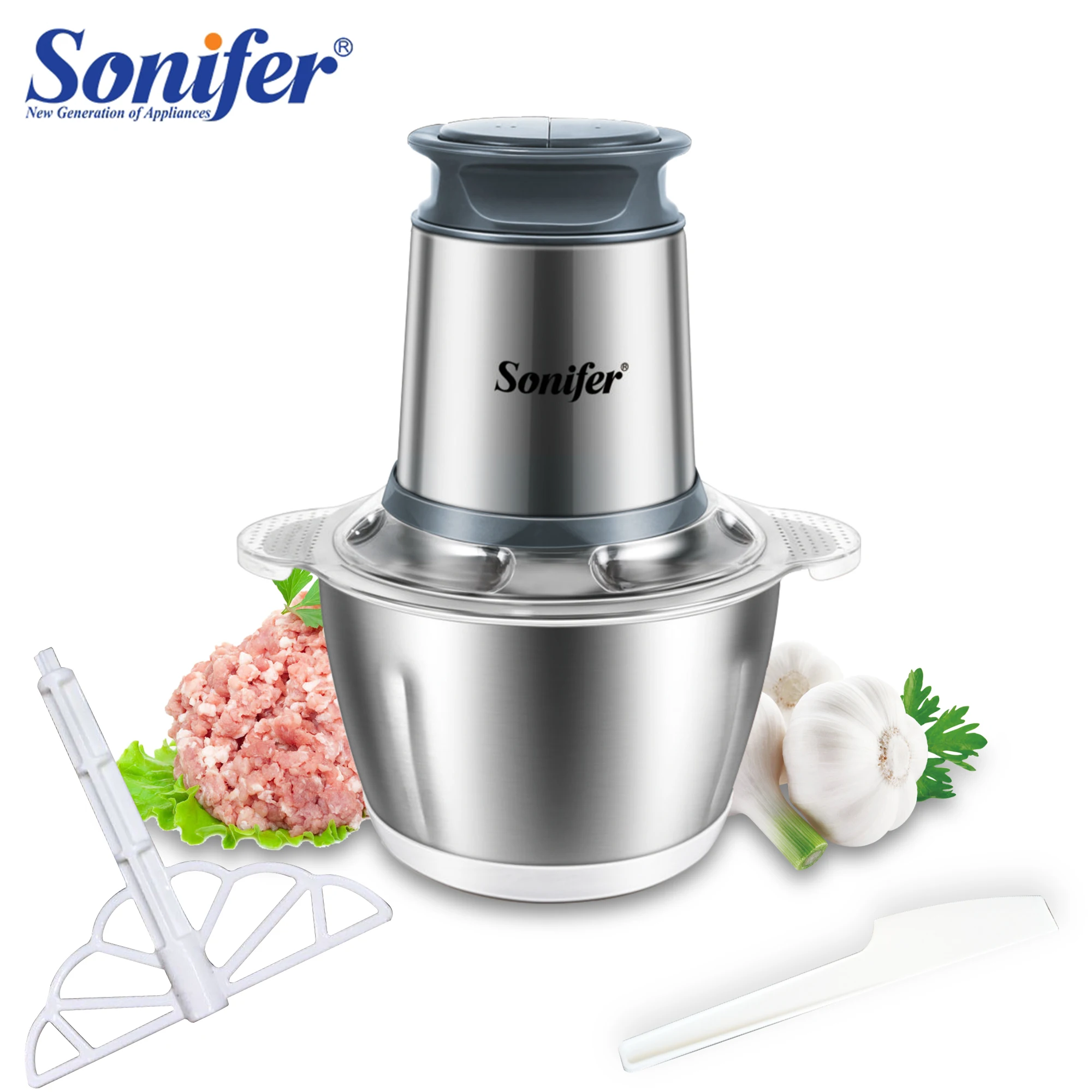 Sonifer – hachoir à viande électrique 2 vitesses en acier inoxydable, robot m&ea...