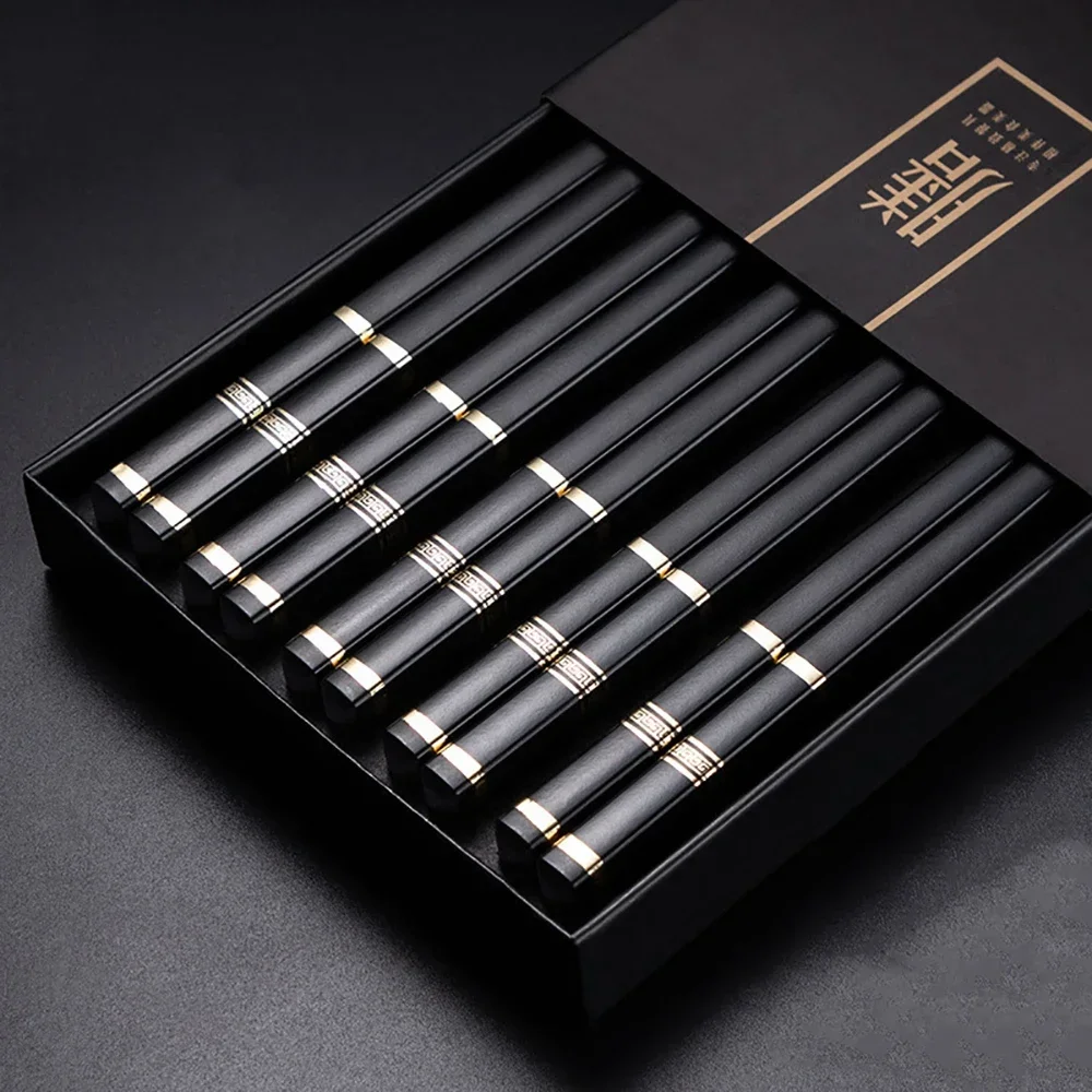 5 paires de baguettes japonaises en alliage antidérapant, ensemble de baguettes à Sush...