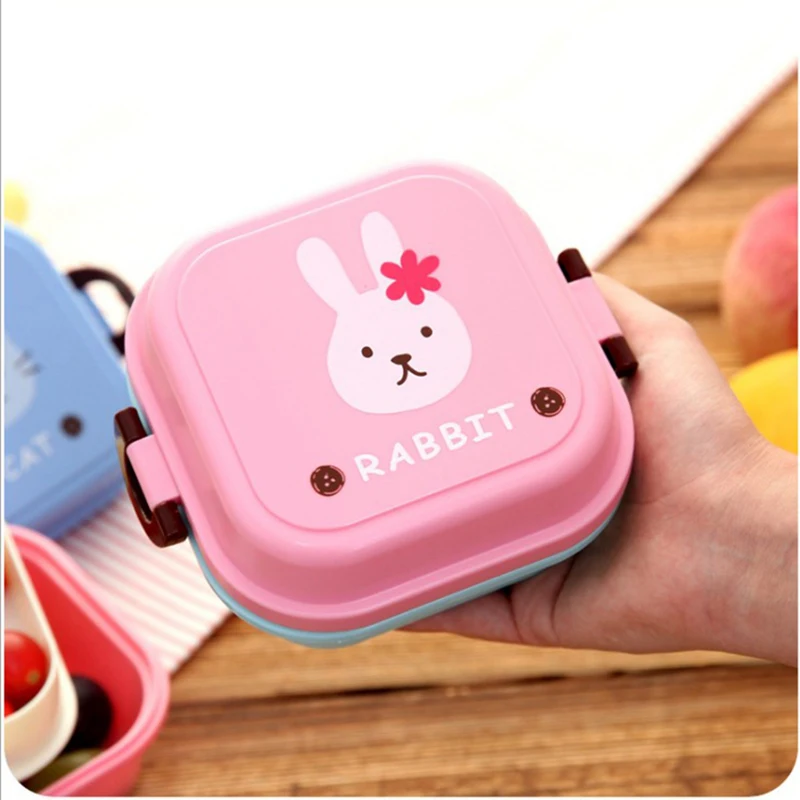 Boîte à lunch de dessin animé portable mignon, micro-ondable, enfants, 2 couches...