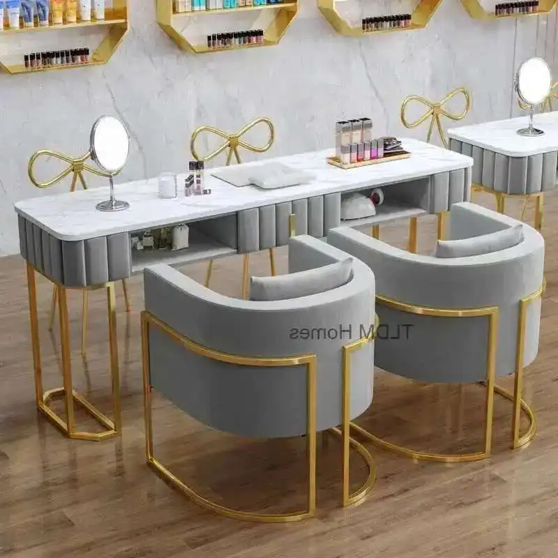 Ensemble de Table et chaises de manucure nordique en marbre, meubles de Salon, Table de manucure pro...