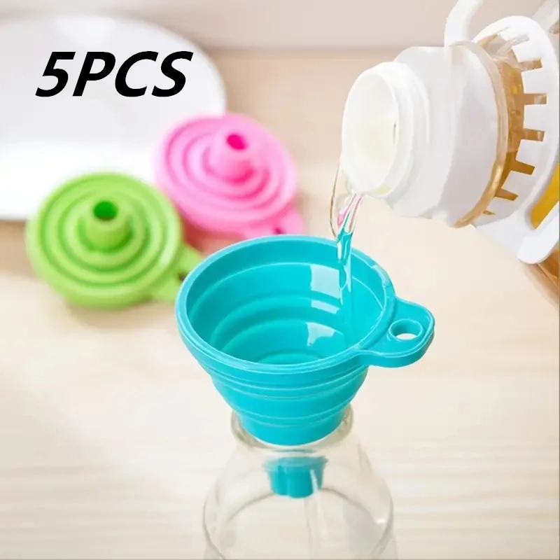 Entonnoir pliant en Silicone, multifonctionnel, Portable, Mini cuisine rétractable, fuite d'h...