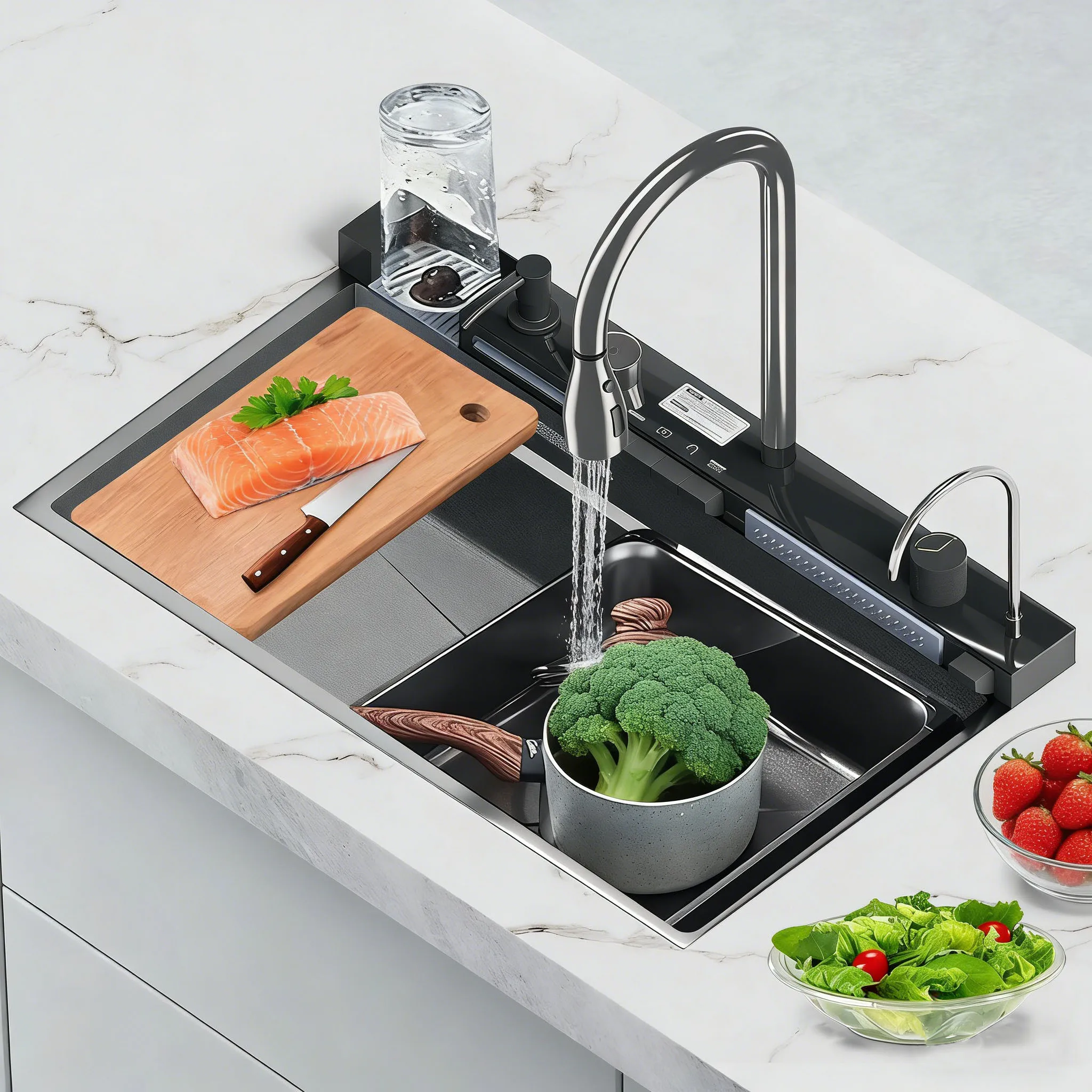 Évier de cuisine en acier inoxydable, évier durable avec égouttoir, panier filt...