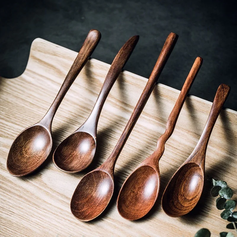 Fourchette en bois massif en forme de bûches naturelles, cuillère japonaise à lo...