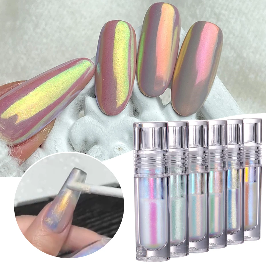 6 couleurs petit tube Quick DTY poudre de chrome liquide Aurora blanc Pigment brosse brillant frotte...