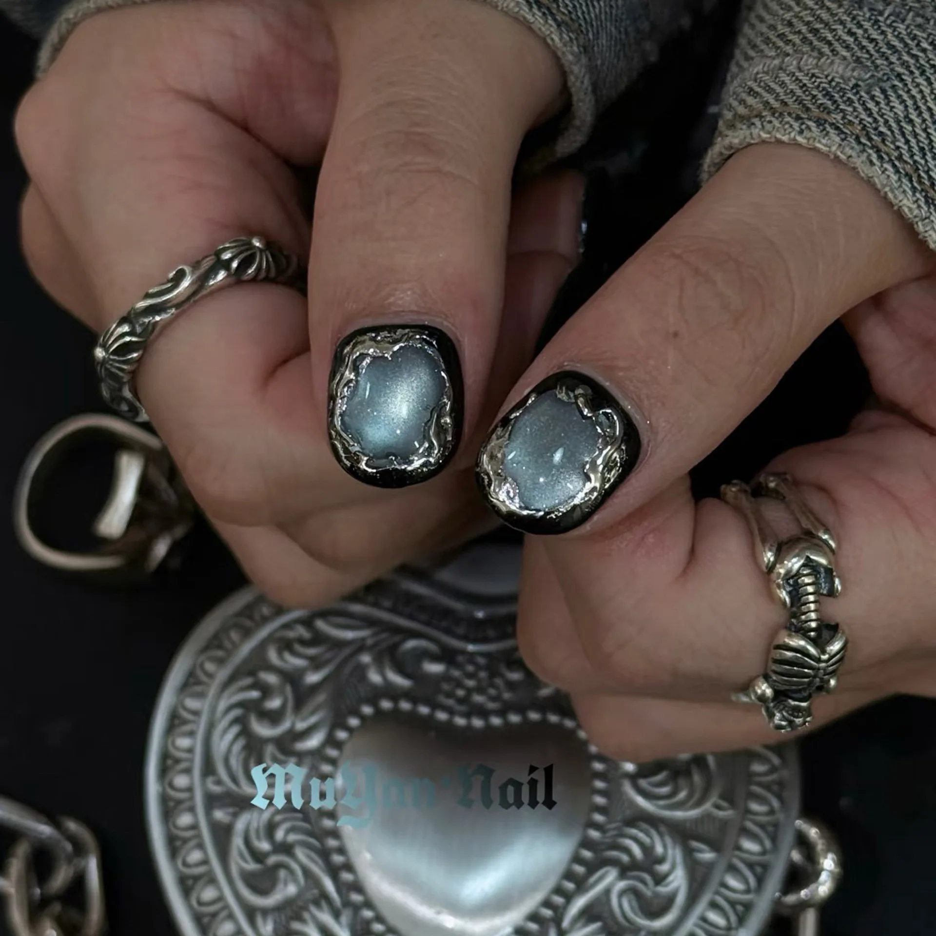150 pièces Punk clous à ongles breloques 6 grilles or...