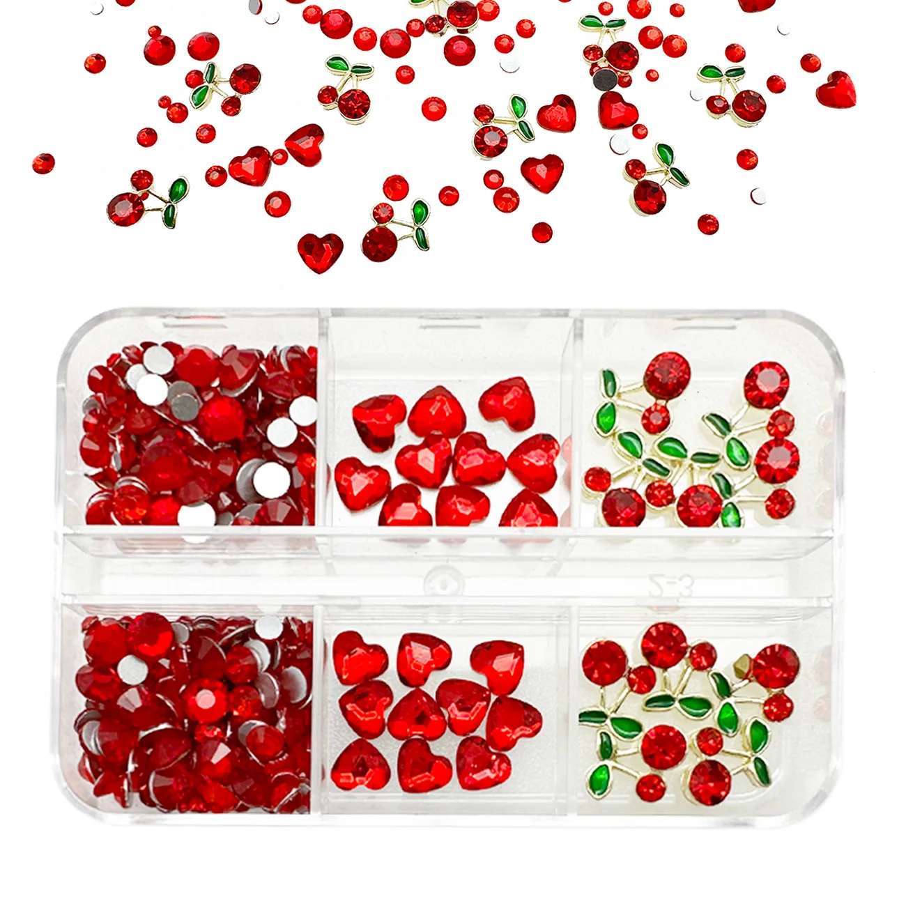 890 pièces 3D cerise ongles breloques strass en forme de coe...