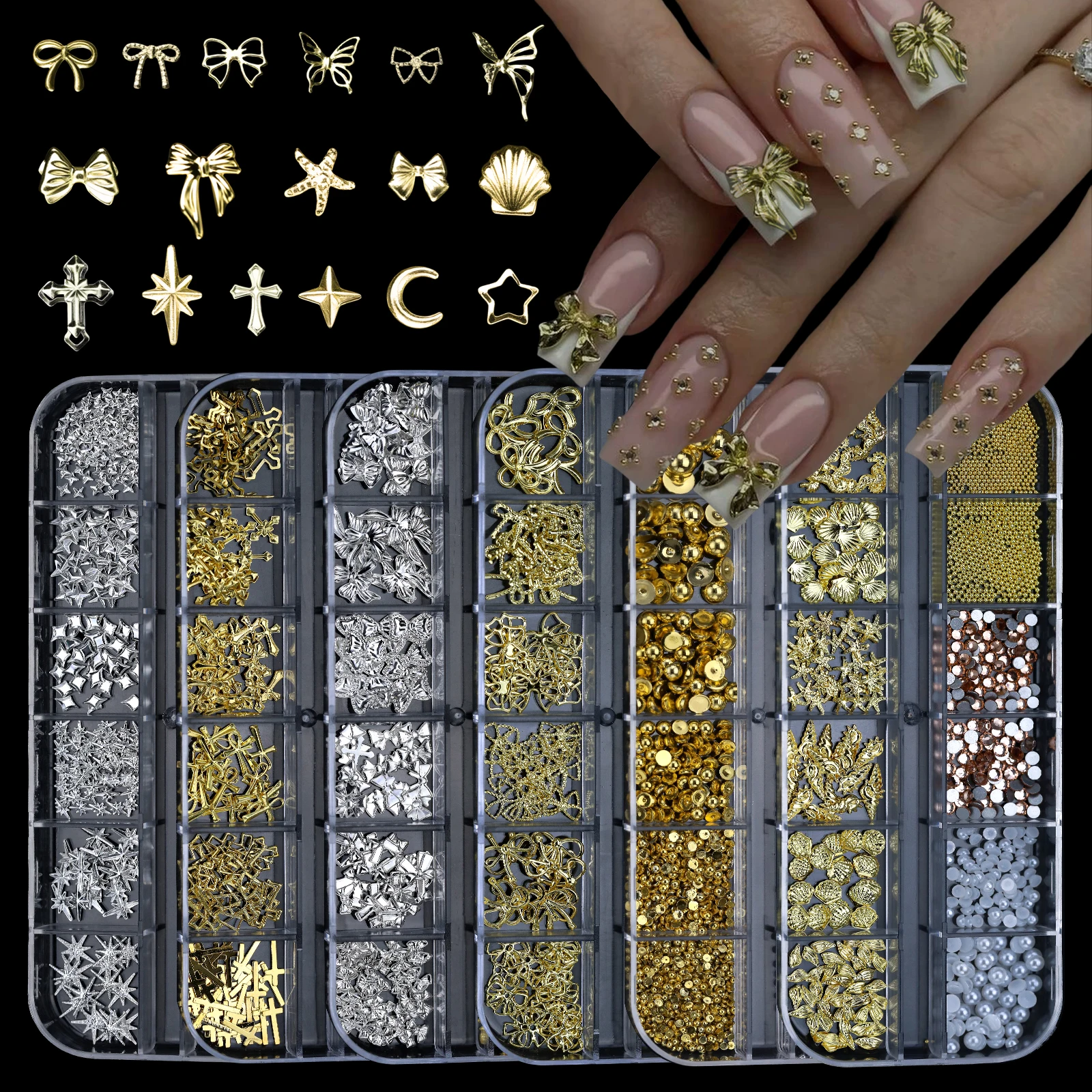 12 grille or océan Rivet ongles bijoux 3D mixte métal lune étoile soleil perle ...