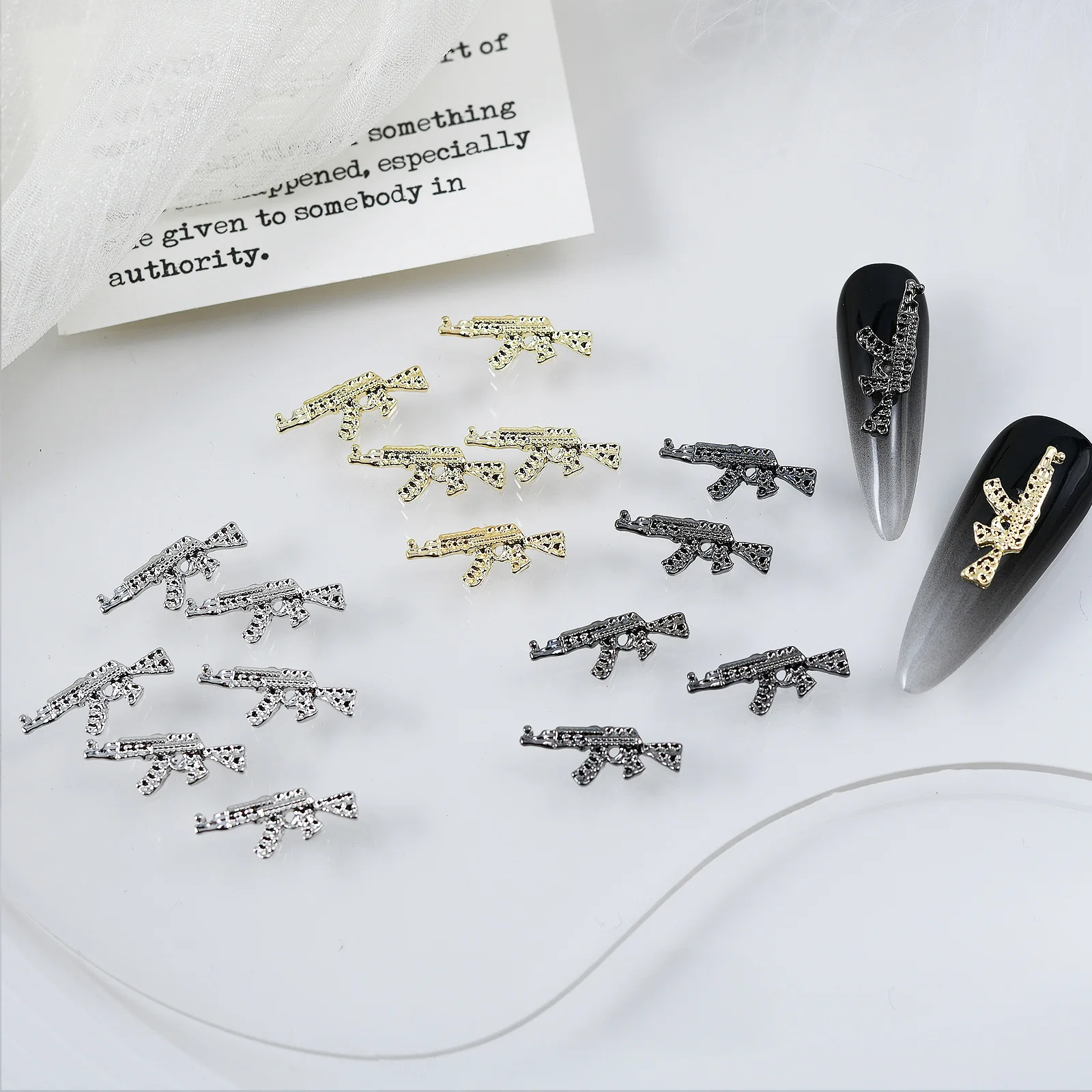 20 pièces de luxe rétro argent pistolet ongles breloques alliage ongles bijoux 3D 3D m...