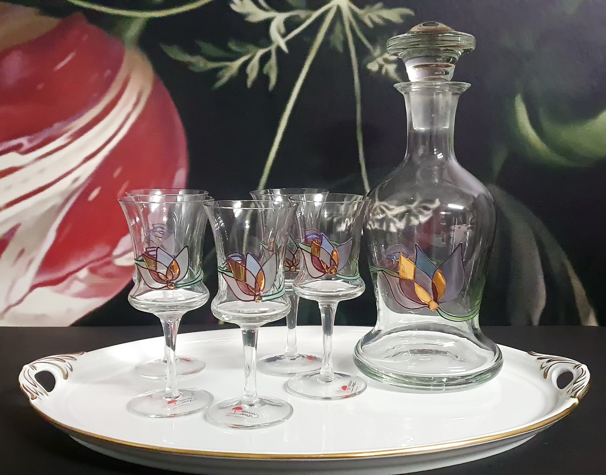 Ensemble de 5 verres à vin et carafe vintage pour 5 personne...