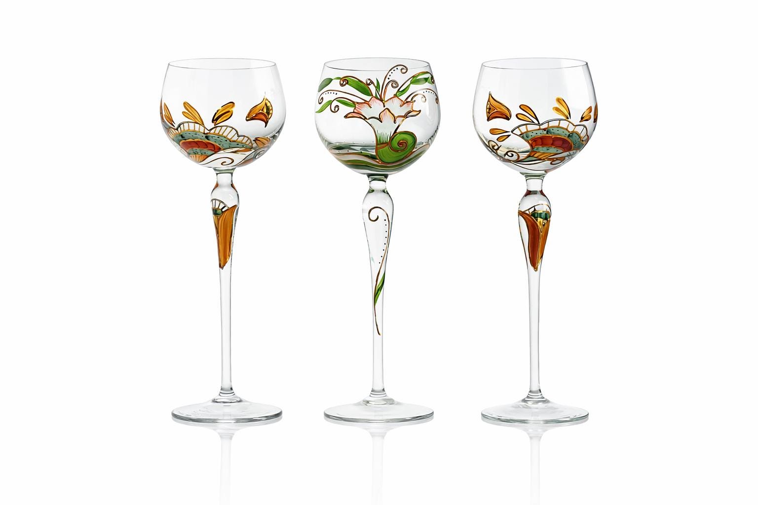 Verres à vin Nagel peints à la main « Mondes oniriques » - rare ensemble d...