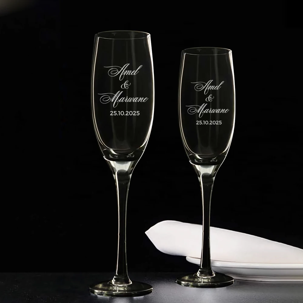 Verres à vin personnalisés, gravure laser, flûte à champagne pour mariage...