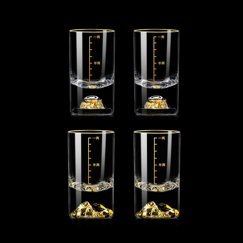 Tasse de Vision de montagne dorée, verre en feuille d'or, verre à Shot de luxe de 50ml...