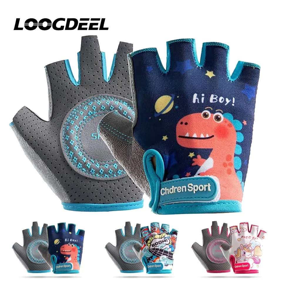 Gants de vélo et d'escalade sans doigts antidérapants LOOGDEEL pour enfants, gar&ccedi...